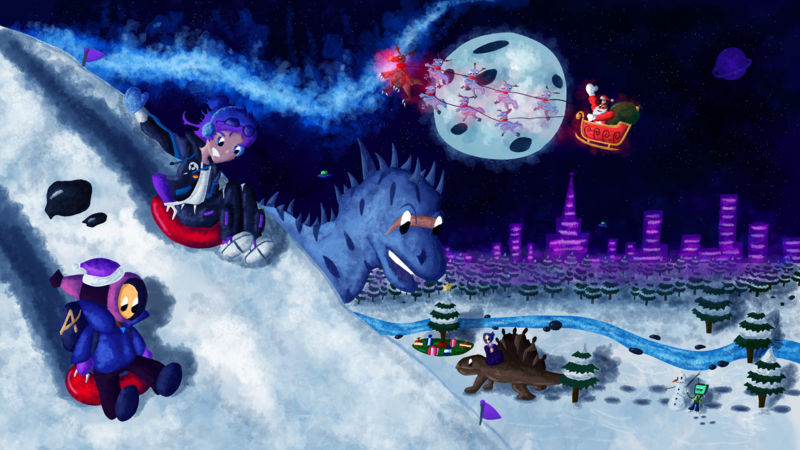 This next one is by Chandeleer and captures all of the mascots from Aurora, Bazzite, and Bluefin playing in the snow.